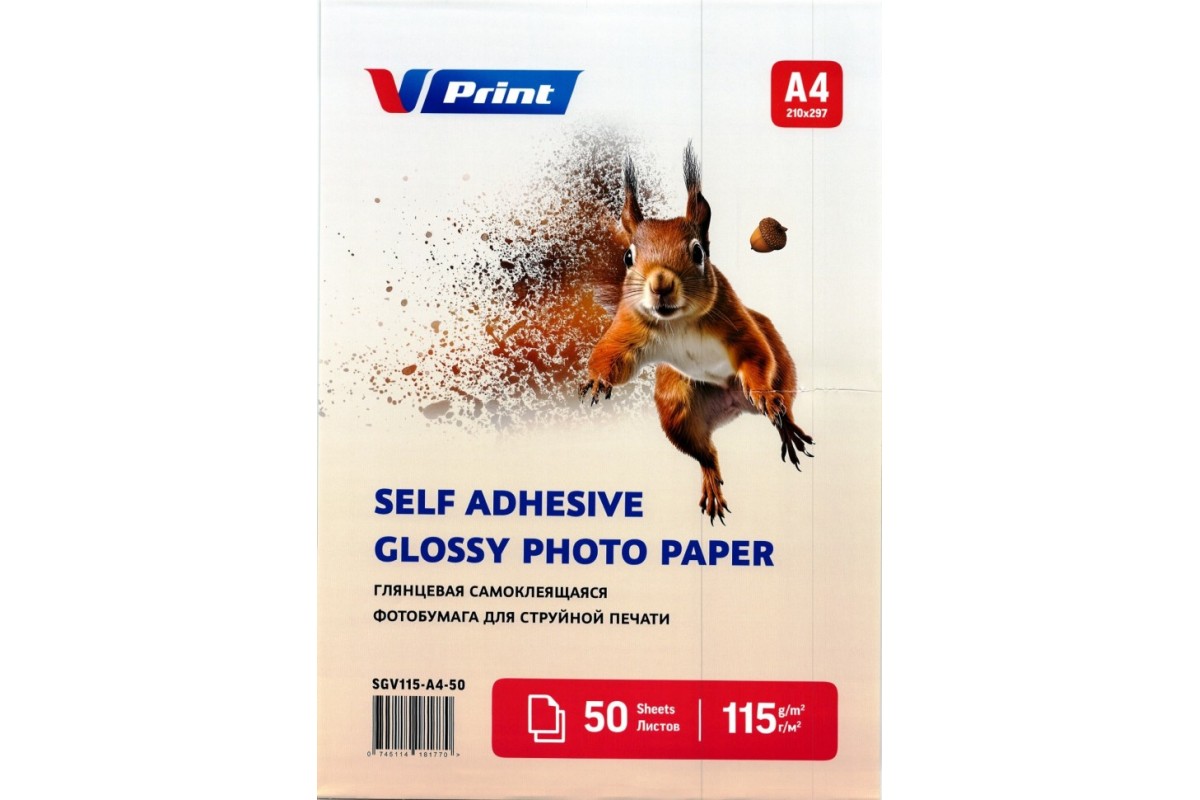 SGV115-A4-50 Фотобумага Самоклеящаяся для струйной печати VPRINT Глянцевая A4*210x297мм/50л/115г (36