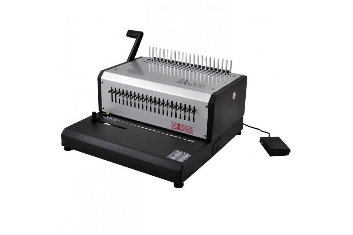 E-BIND 30–переплетная машинка на пластиковую пружину от компании Rayson. Мощный брошюратор с электрическим приводом механизма перфорации бумаги и напольной педалью перфорации, с помощью которой можно переплести до 500 листов. E-BIND 30 часто покупают типографии и офисы со средним и большим объемом работ.