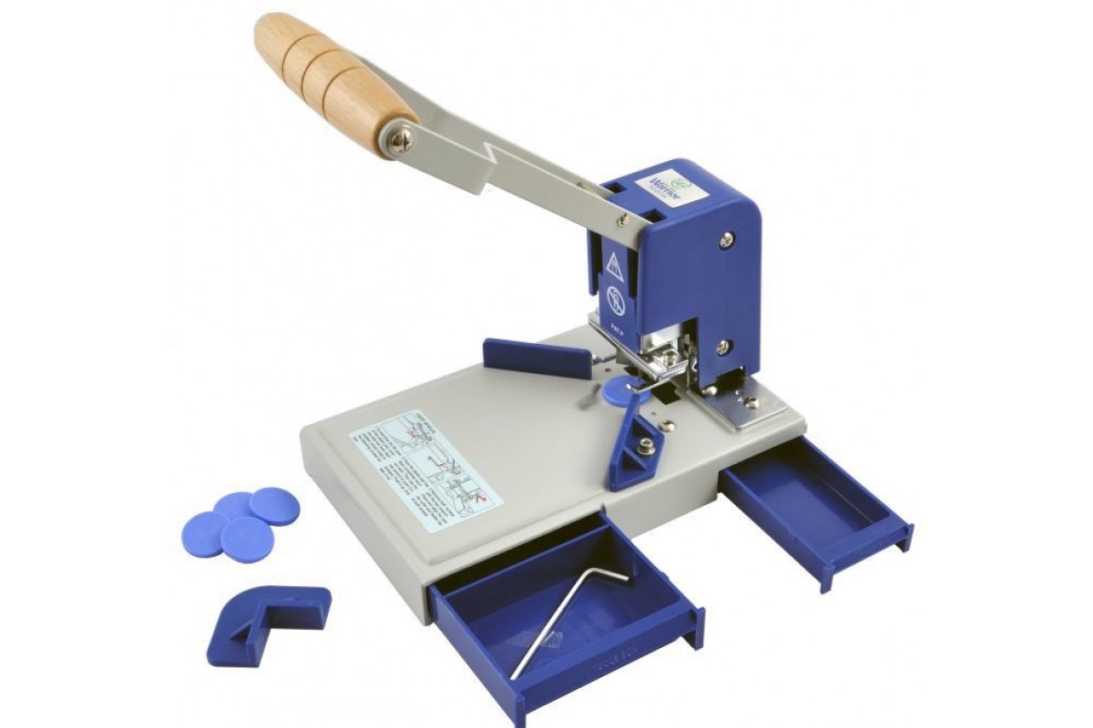 Профессиональный многофункциональный обрезчик углов AD-1. В базовой комплектации он поставляется с ножом базового радиусом 6 мм, обрезчик позволяет придать элегантный и презентабельный вид типографской продукции, визитке или календарю. AD-1 имеет полностью металлический корпус, удобную большую деревянную ручку и надежное основание. AD-1 просто незаменим для типографий. За раз он способен обрезать до 100 листов (80 г/м2), а дополнительные ножи (приобретаются отдельно) позволят не только разнообразить радиус обрезки углов (базовые радиусы 3,5 и 10 мм), но и произвести прямой срез угла (9, 12 мм), пробить круглое отверстие (диаметр 6 мм) и даже произвести вырубку под ригель. В последнем случае для удобства позиционирования бумаги рекомендуется приобрести специальную линейку. AD-1 сделан на Тайване.